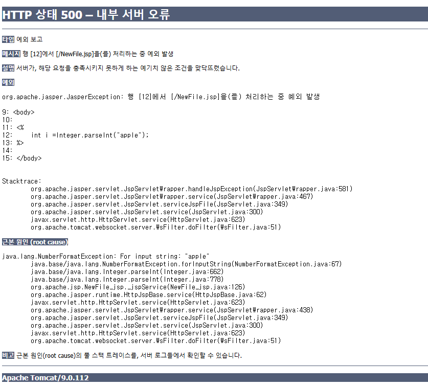 > 코드가 이상하므로 500 에러 발생!!