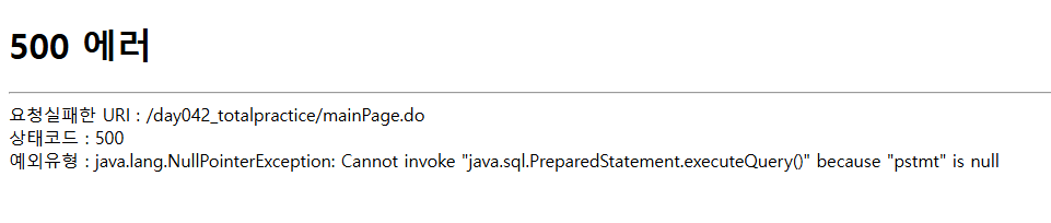 pstmt가 null이 되어 널포인트익셉션이 발생하므로