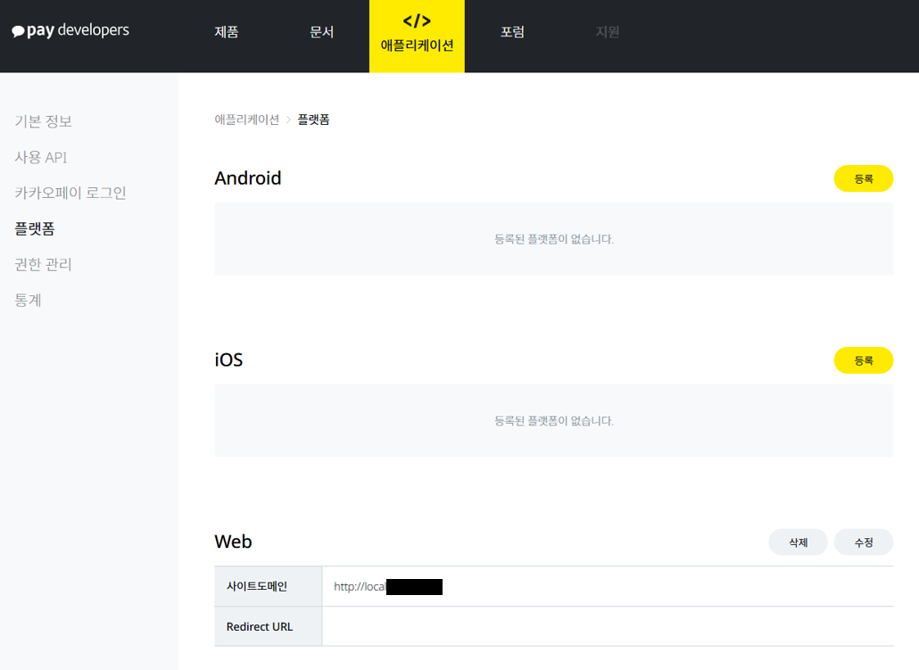 카카오 디벨로퍼 (https://developers.kakao.com/) 와는