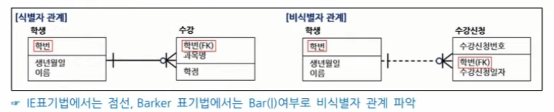 Barker 표기법: Bar(|) 여부로 비식별자 관계를 파악