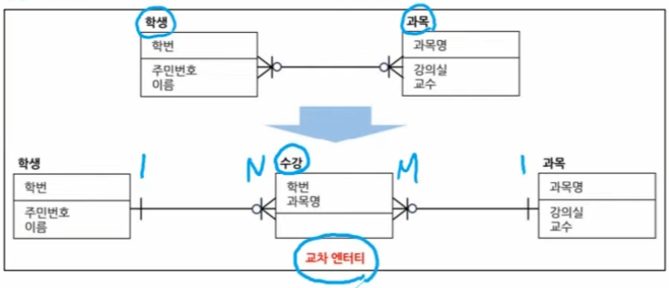 - '개'념적: 학생/과목/수강을 그림으로 분리한다