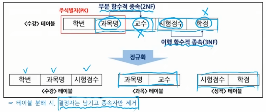 ※ 부분 함수 종속이 남아 있으면 2정규화에서 걸린다.