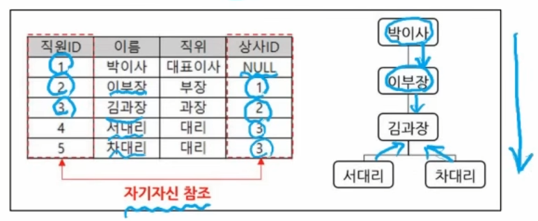 - 조인: 정규화로 분리된 테이블을 관계로 연결해 조회